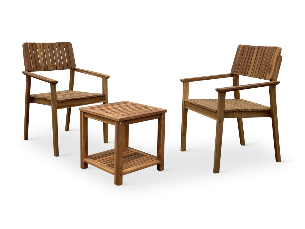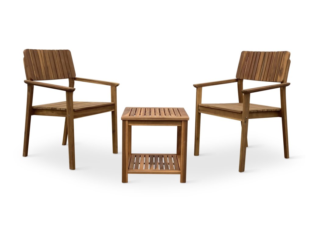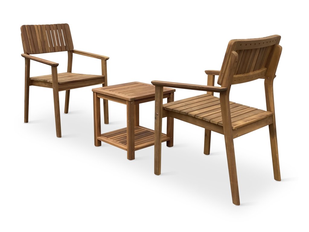 Sestava na balkon stolku LOTTO a křesel LUCY z akácie bude pro vás vhodným řešením, zejména pokud hledáte dřevěný a zároveň cenově dostupný zahradní nábytek.