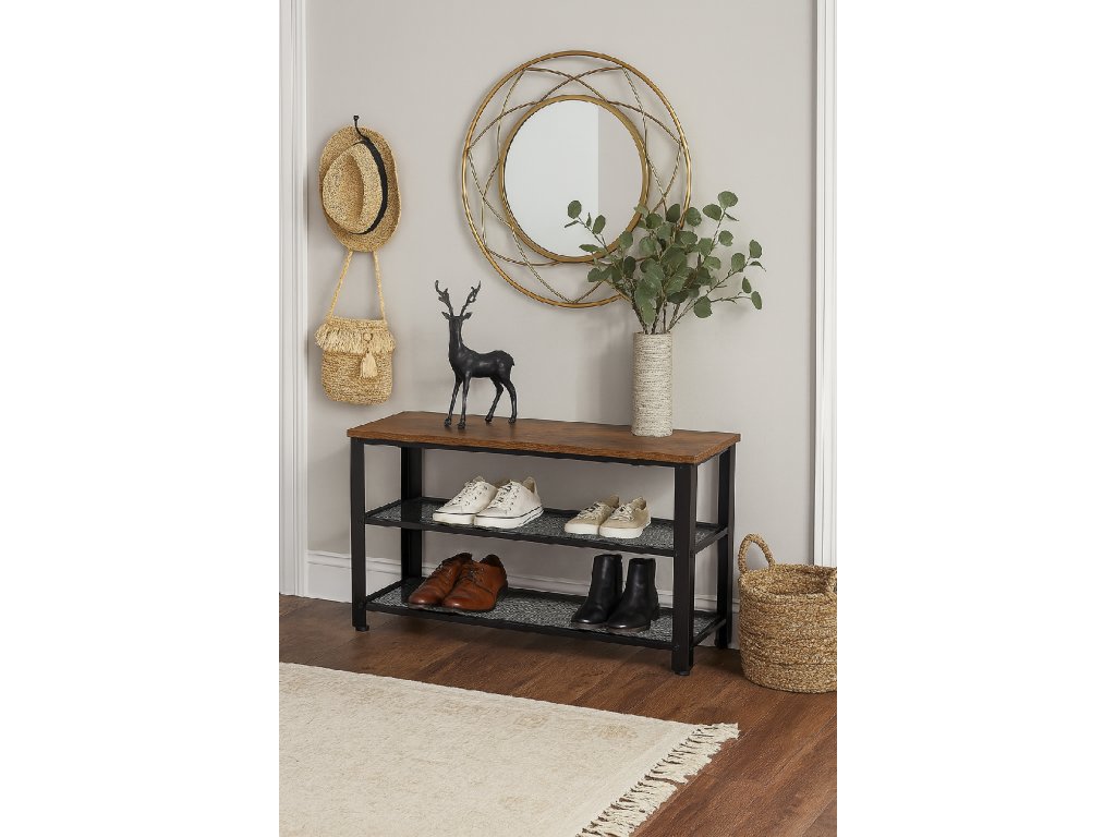 Botník s ocelovou kontrukcí a odkladací plochou z MDF, 80x30x44 cm.