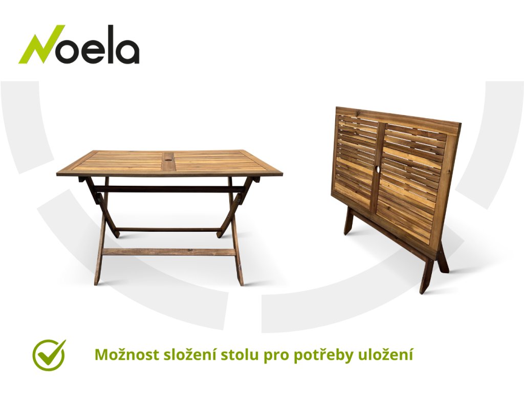 - Skládací stůl s otvorem pro slunečník
