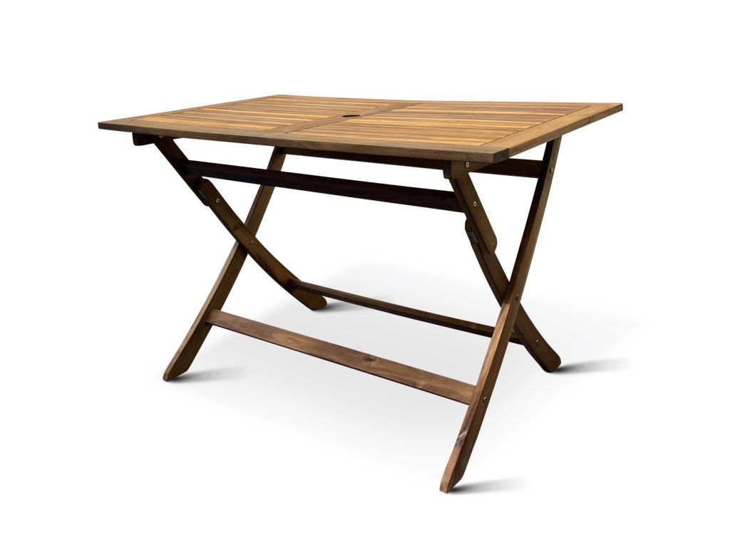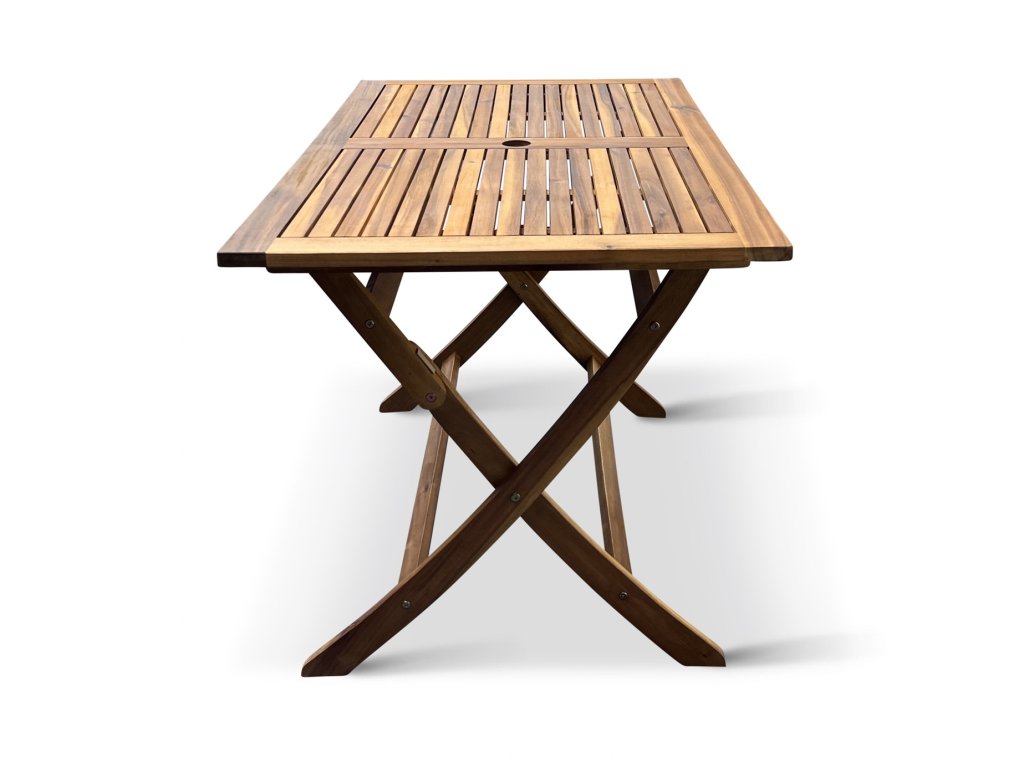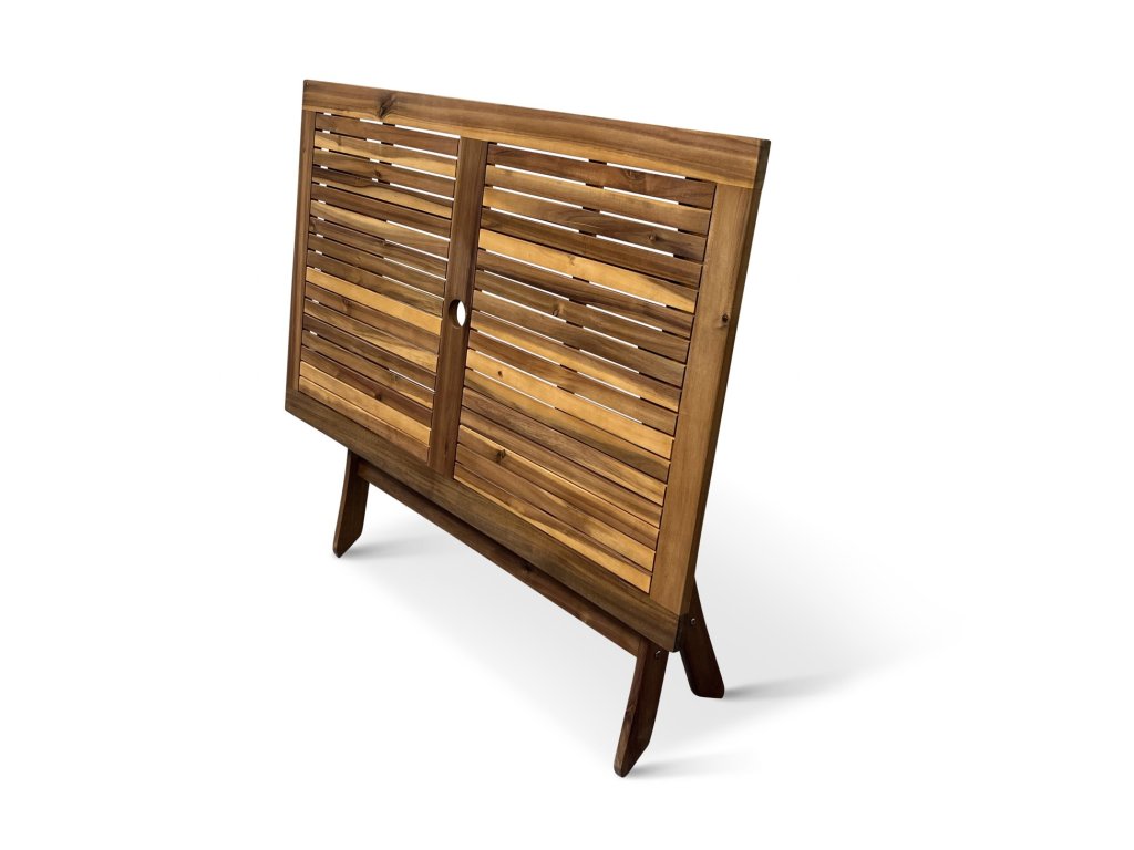 Zahradní skládací stůl Mandy je vyrobený z vysoce kvalitního tropického dřeva akácie, které není náročné na údržbu. Dřevěný stůl Mandy nabízí praktickou možnost složení stolu do minimálních úložných rozměrů, což oceníte zejména při uložení po sezóně. Dřevěná deska stolu v ideální výšce 74 cm s otvorem pro slunečník uprostřed.
