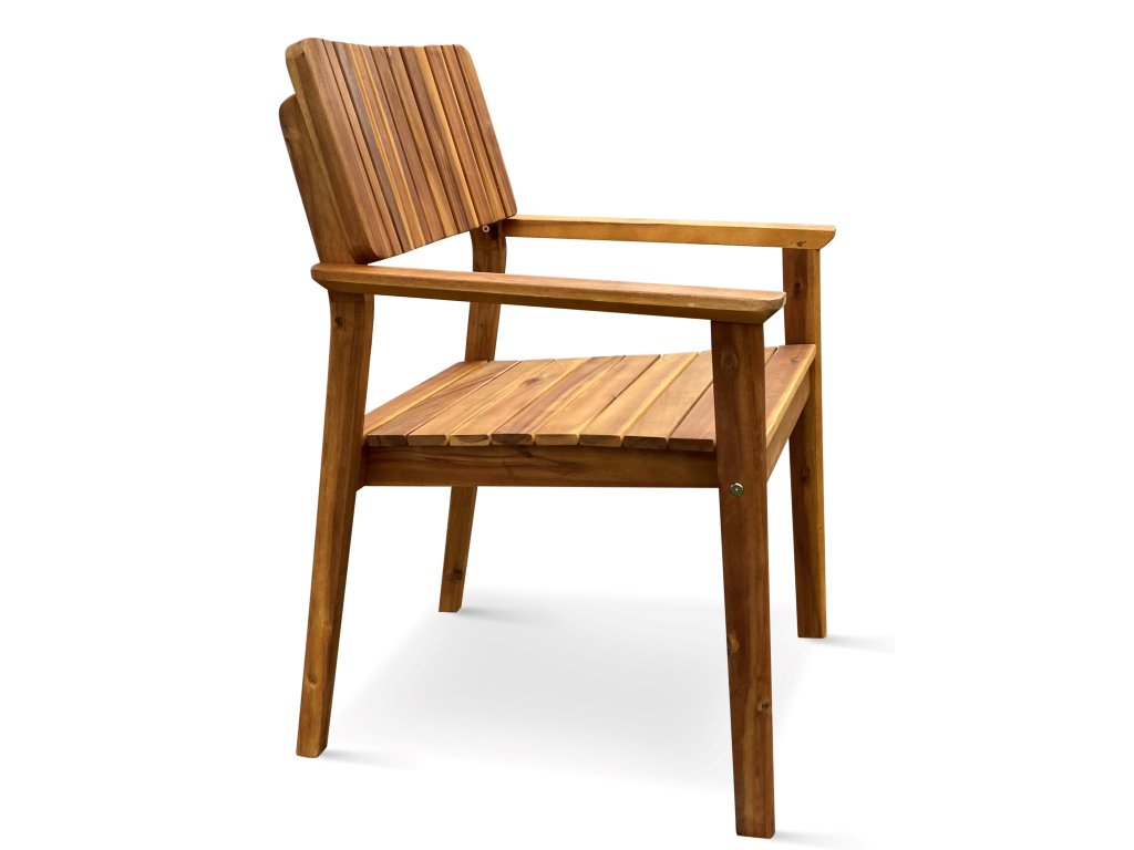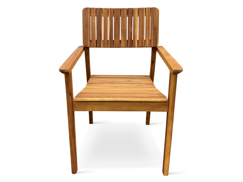 Zahradní stůl doplňuje 6 křesel LUCY z akáciového dřeva. Zajímavý vzhled a kvalitní zpracování křesla. Zvolená poměrně robustní konstrukce křesla není v kategorii akáciového zahradního nábytku obvyklá. Křeslo je navíc velmi komfortní díky prostornému sedáku o rozměrech 46 x 48 cm a díky pevným dřevěným područkám. Křesla lze stohovat, což oceníte zejména při uskladnění po sezóně. Nosnost činí až 120 kg.