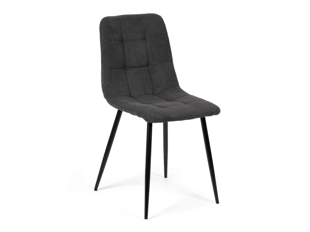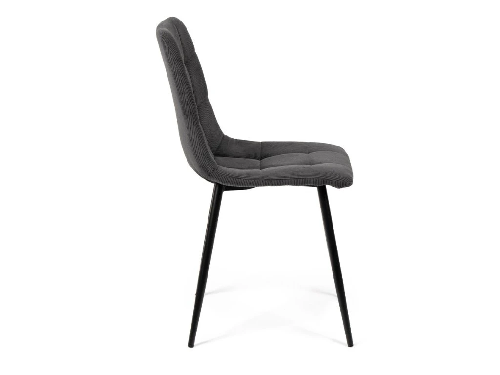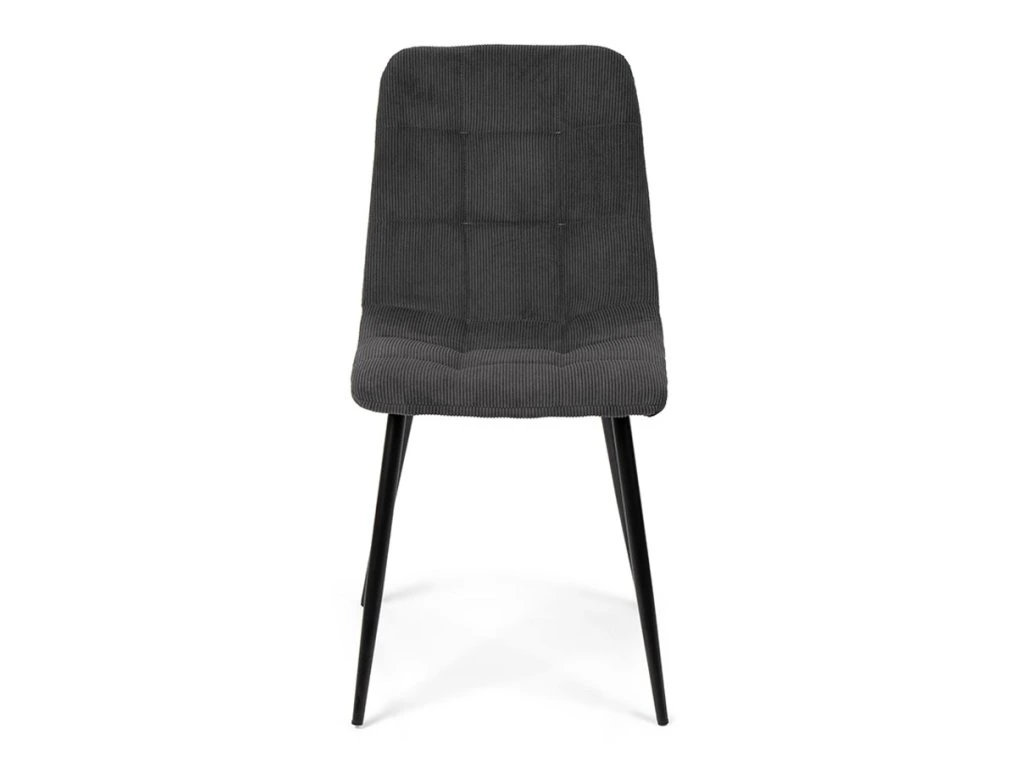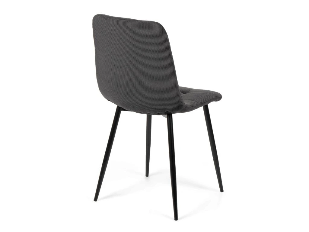 Jídelní stůl doplňují židle Aria, které zaujmou jednoduchým tvarem a pohodlným čalouněním z tmavě šedého manšestru. Kovové nohy v černé barvě dodávají potřebnou stabilitu a snadno se kombinují s různými typy stolů. Sedák je vyrobený z 9 mm překližky a vrstvy pěny 22kg/m s čalouněním z manšestrové látky FABB. Její nosnost činí až 120 kg. Židli nabízí komfortní sezení a nenápadný, moderní vzhled.