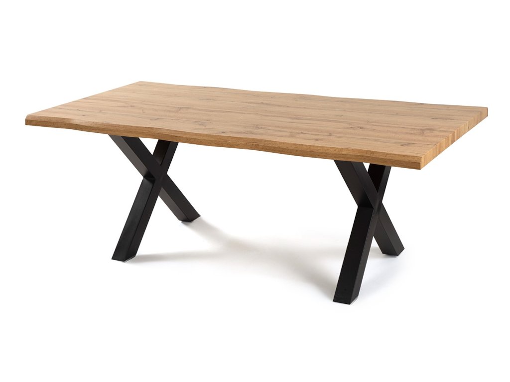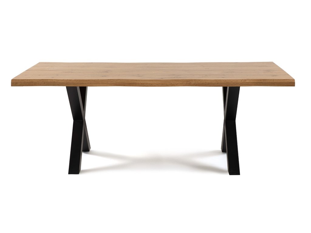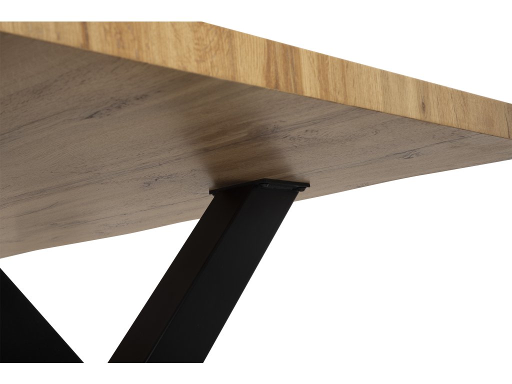 Obdélníkový jídelní stůl o rozměrech 160 x 90 cm přináší moderní industriální design. Prostorná deska stolu z MDF je vyvedena v přírodním dekoru dřeva s výraznou kresbou. Moderní vzhled stolu umocňuje robustní kovová podnož v černém provedení ve tvaru „X“. Nosnost stolu činí až 100 kg. Použité materiály nevyžadují zvláštní údržbu. Stůl stačí otřít vlhkým hadříkem. Stůl je vhodný do prostorné jídelny či moderní kuchyně.