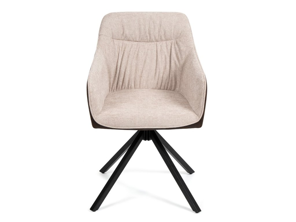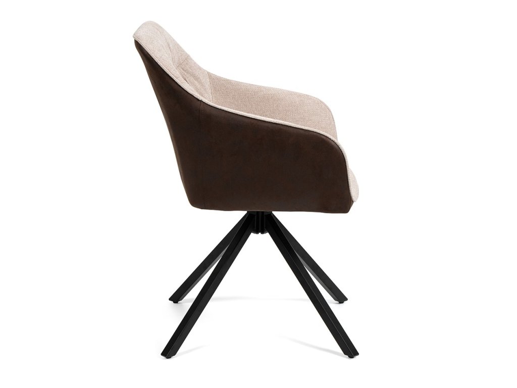 Jídelní stůl doplňují stylové židle s područkami, které zaujmou svým moderním designem. Vaše pohodlí zaručí komfortní čalounění z béžové látky s hnědým kontrastním korpusem a měkké polstrování. Pevná kovová podnož v černé barvě s otočnou funkcí zajistí patřičnou stabilitu. Nosnost činí až 120 kg. Židli využijete jako jídelní židli k vašemu jídelnímu stolu nebo kdekoliv jinde v interiéru. Skvěle se hodí do jídelny, pracovny i kanceláře.