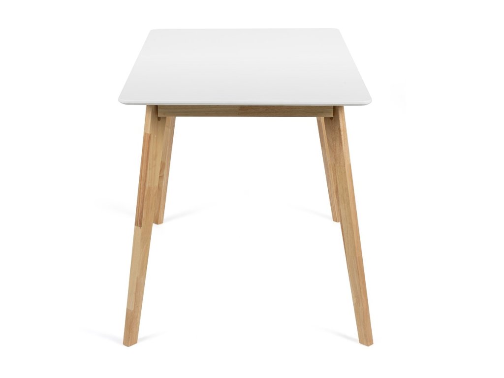 Obdélníkový jídelní stůl o rozměrech 120 x 70 cm vhodný pro 4-6 osob. Deska stolu v bílé barvě byla vyrobena z dřevovláknité desky MDF. Jedná se o cenově dostupnější materiál než masivní dřevo. Stabilní nohy z přírodního dřeva kaučuku vytváří hřejivý dojem. Použité materiály nevyžadují zvláštní údržbu. Stačí otřít vlhkým hadříkem. Stůl SCANDINAVIA dodá interiéru čistý a elegantní vzhled. Je vhodný do jídelny, kuchyně či menších bytových prostor.