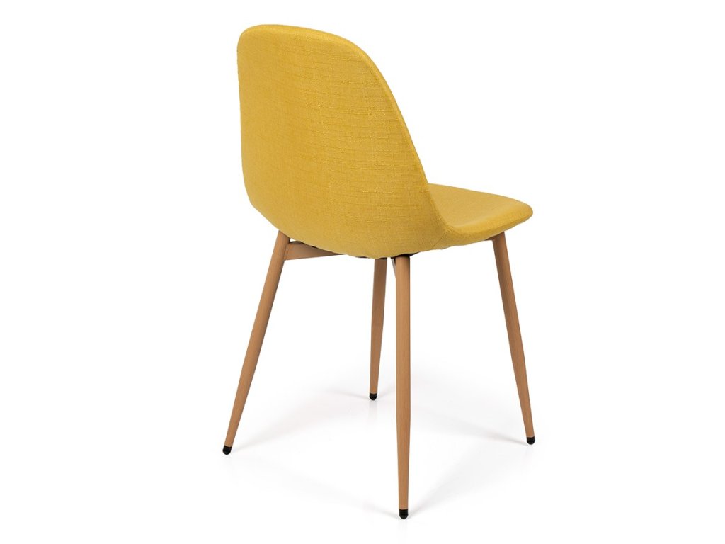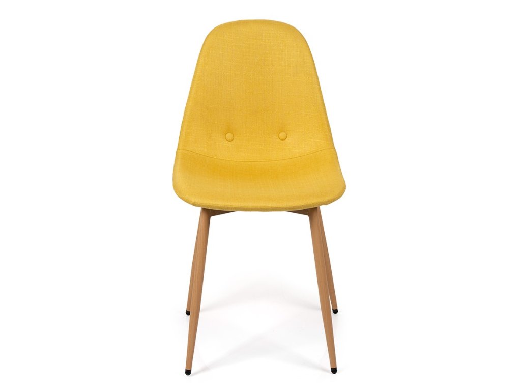 Jídelní stůl doplňují elegantní židle, které zaujmou svým moderním minimalistickým vzhledem. Vaše pohodlí zaručí komfortní látkové čalounění ve žluté barvě s dekorativními knoflíky. Pevné kovové nohy v přírodním dekoru dřeva zajistí patřičnou stabilitu. Lehkou židli MARIE snadno přenesete. Její nosnost činí až 120 kg. Skvěle se hodí do jídelny, kuchyně i pracovny.