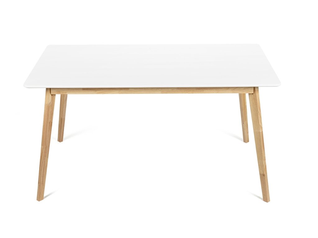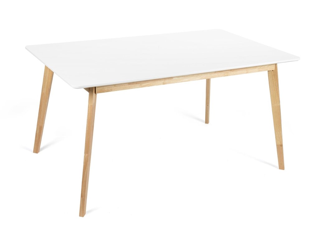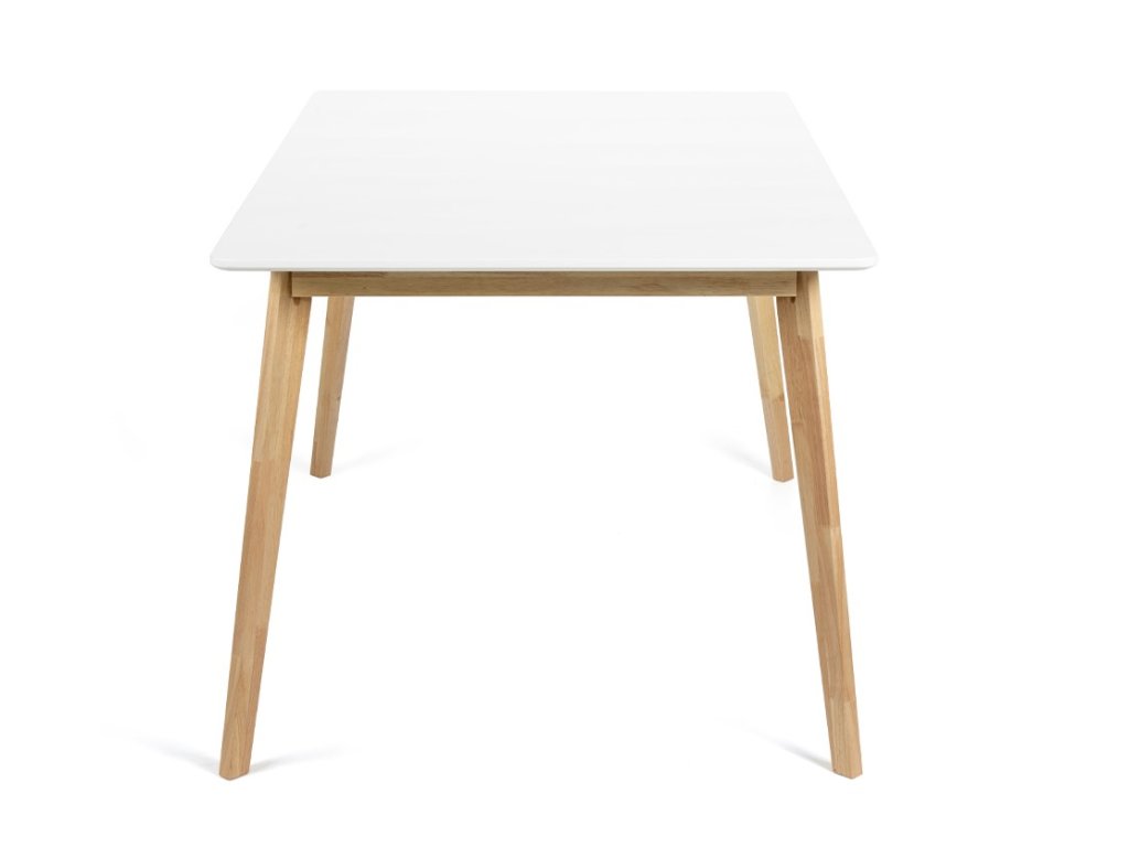 Obdélníkový jídelní stůl o rozměrech 150 x 90 cm vhodný až pro 6 osob. Deska stolu v bílé barvě byla vyrobena z dřevovláknité desky MDF. Jedná se o cenově dostupnější materiál než masivní dřevo. Stabilní nohy z přírodního dřeva kaučuku vytváří hřejivý dojem. Použité materiály nevyžadují zvláštní údržbu. Stačí otřít vlhkým hadříkem. Stůl SCANDINAVIA dodá interiéru čistý a elegantní vzhled.