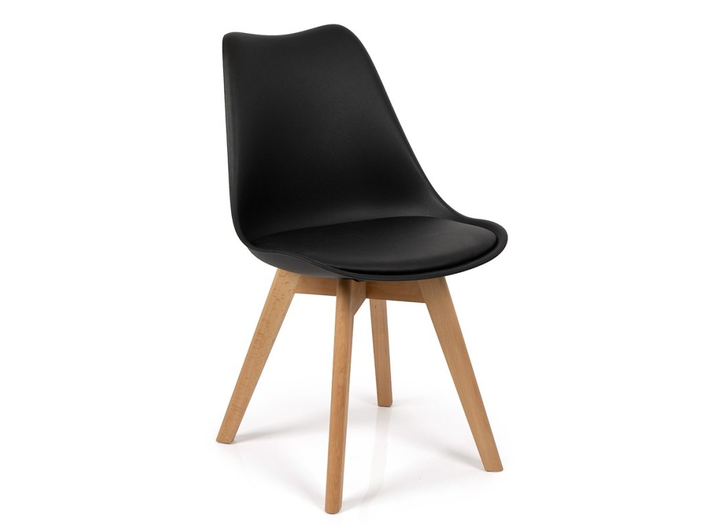 Jídelní stůl doplňují židle s dřevěným podnožím v přírodní barvě s černým sedákem z polypropylenu. Stylová židle zaujme moderním skandinávským designem. Vaše pohodlí zaručí komfortní černé plastové sedátko s pohodlným polstrováním. Masivní dřevěné nohy z bukového dřeva zajišťují pevnost, stabilitu a dodají židli přírodní vzhled. Lehkou židli SCANDINO snadno přenesete. Její nosnost činí až 120 kg.