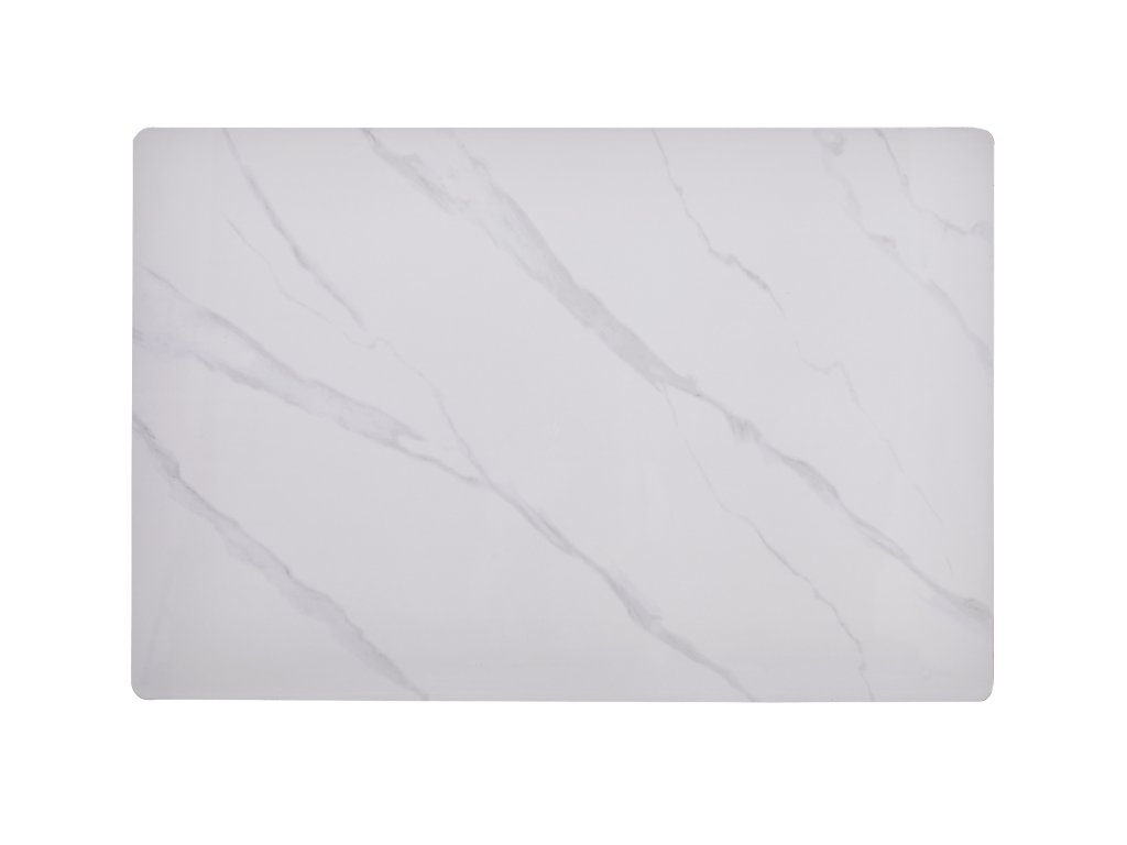 Deska v bílé barvě s mramorovým dekorem působí luxusně a nadčasově