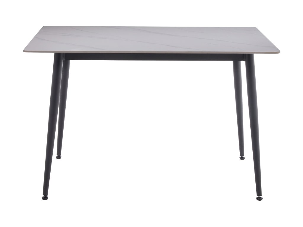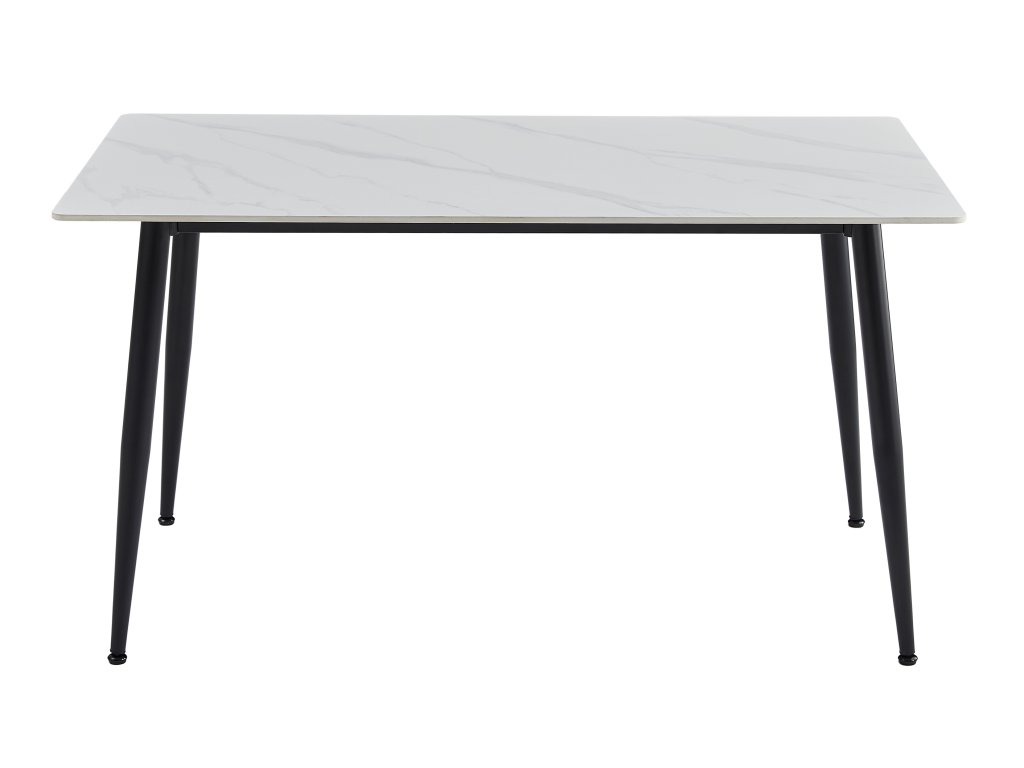 Keramická deska, barva bílá s dekorem mramoru, práškované ocelové podnoží v černé barvě, 140x80x75 cm.