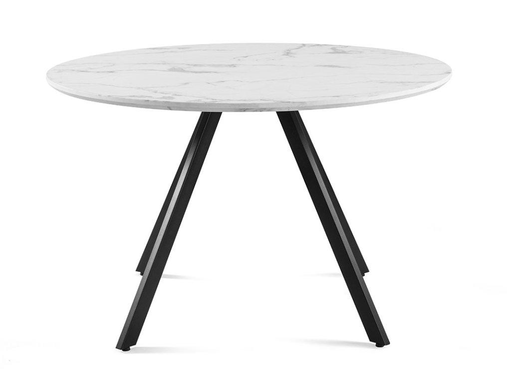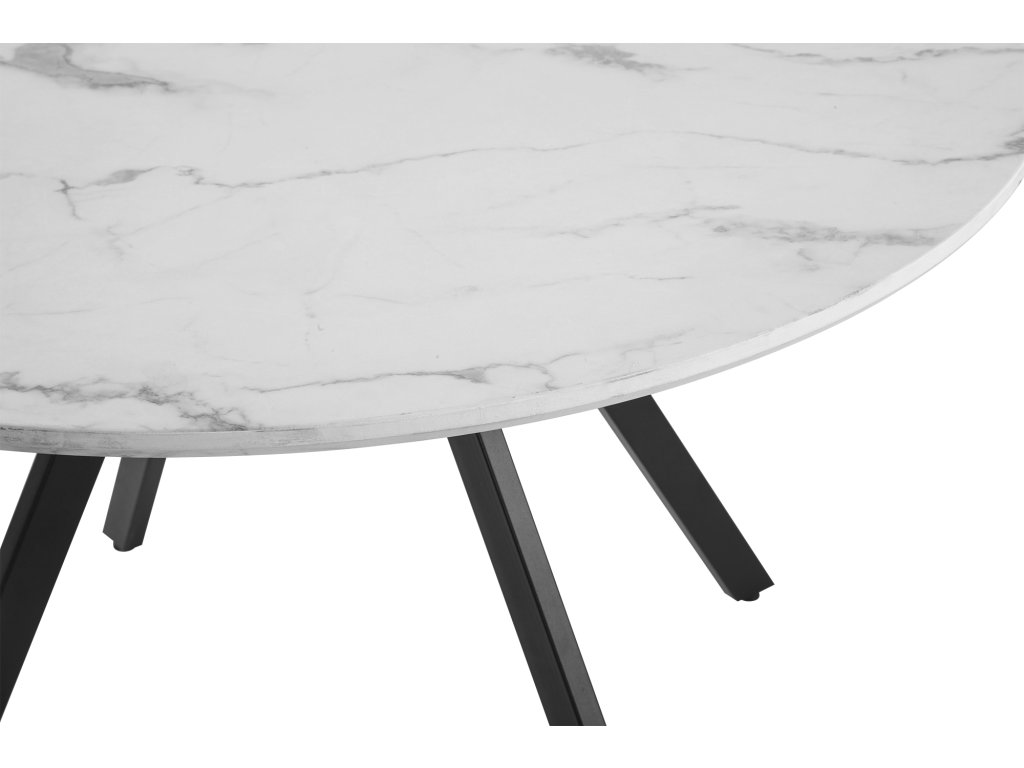 MDF deska, deska v bílé barvě s mramorovým dekorem, práškované ocelové podnoží v černé barvě, 120x120x75 cm.