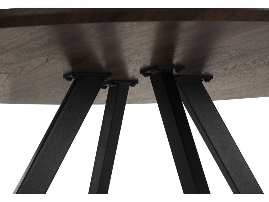 MDF deska, barva hnědá s texturou dřeva, práškované ocelové podnoží v černé barvě, 120x120x75 cm.