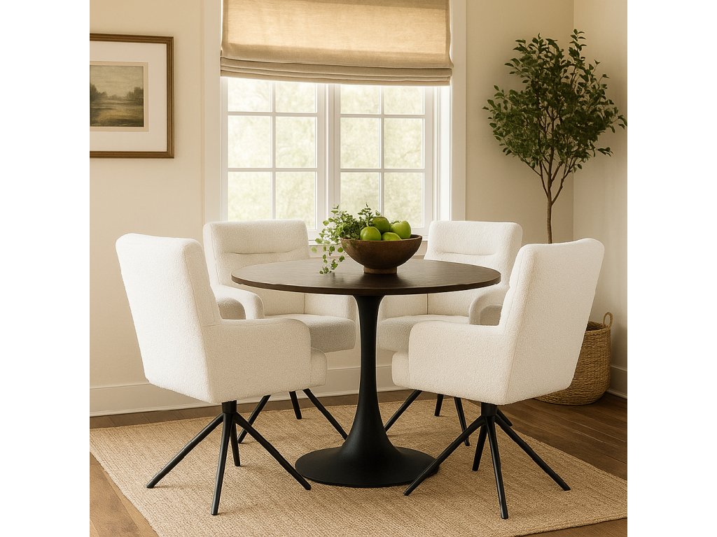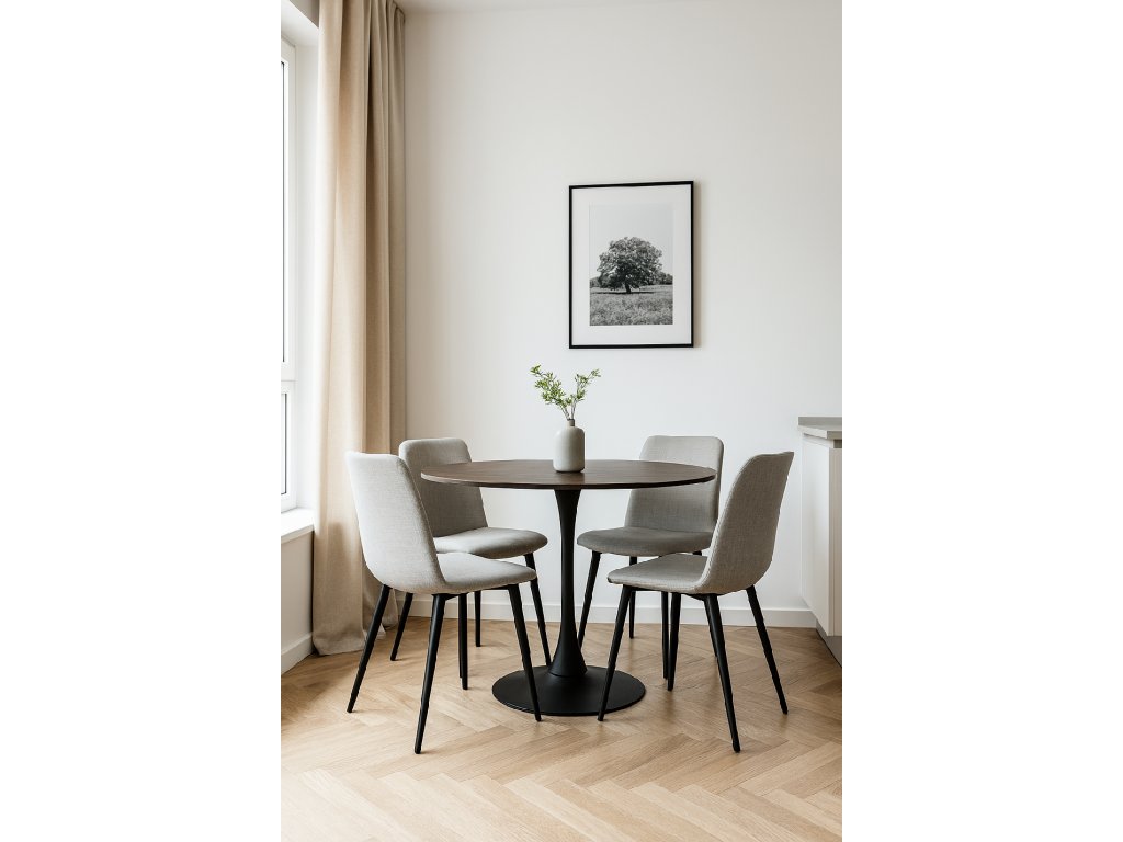 Kulatý jídelní stůl s elegantním minimalistickým designem