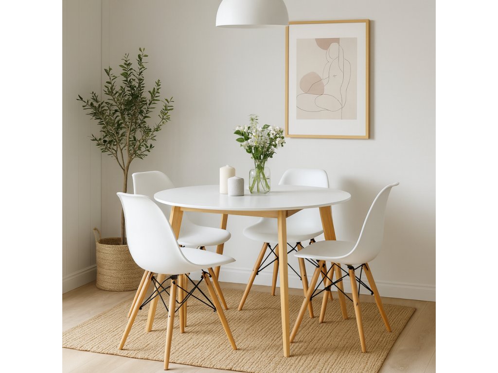 Kulatý jídelní stůl s moderním skandinávským designem