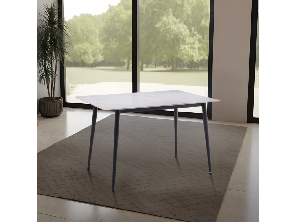 Keramická deska, barva bílá s dekorem mramoru, práškované ocelové podnoží v černé barvě, 120x80x75 cm