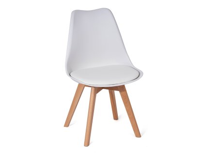 Jídelní židle s dřevěným podnožím v přírodní barvě, bílý PP sedák, 49x55x83 cm Typ dřeva: Buk