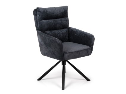 Otočná jídelní židle s ocelovým podnožím v černé barvě, látkový potah, 82x60x60 cm.