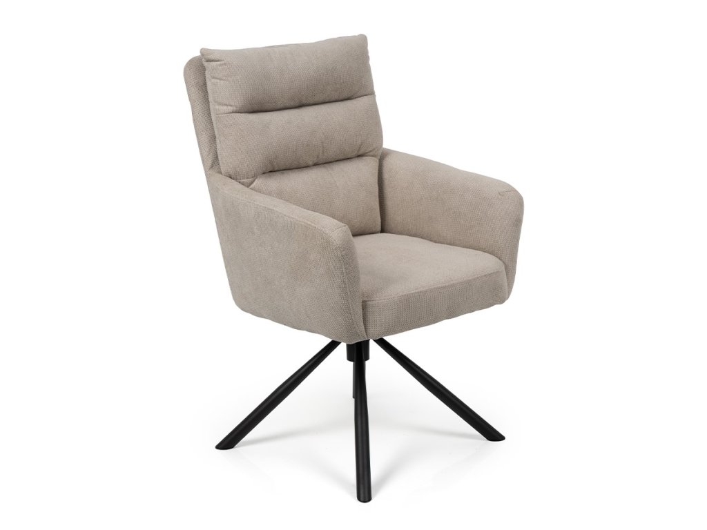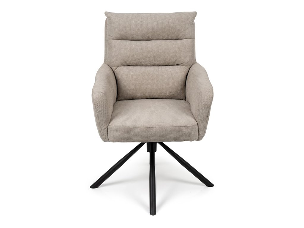 Otočná jídelní židle s ocelovým podnožím v černé barvě, látkový potah, 82x60x60 cm.