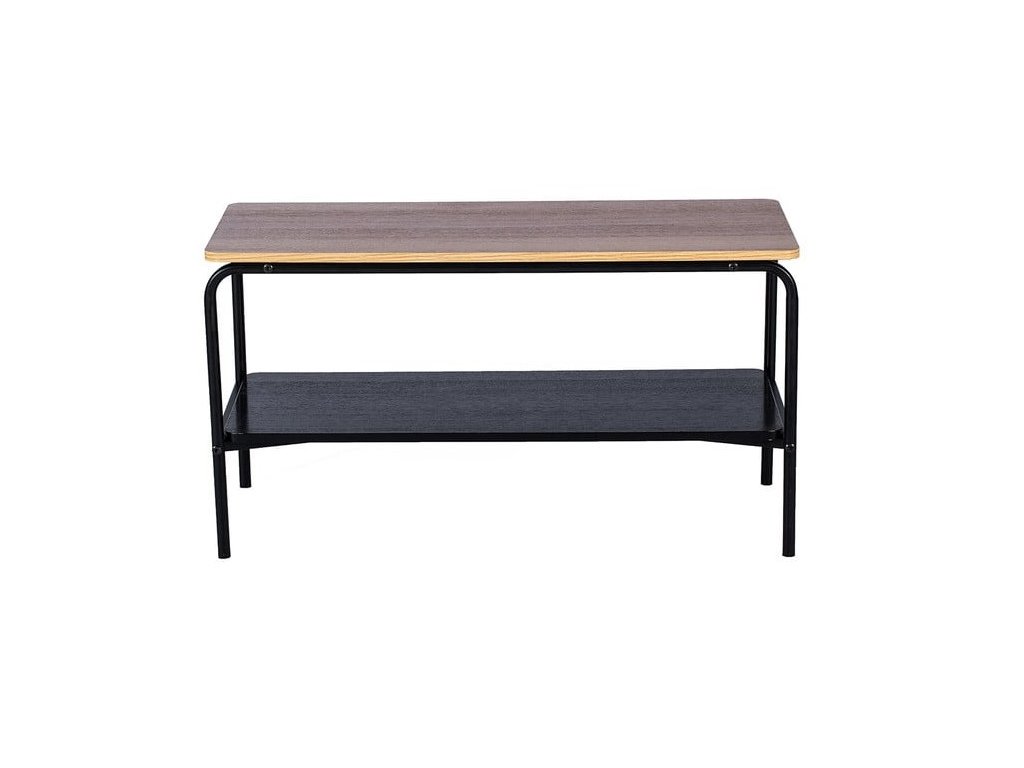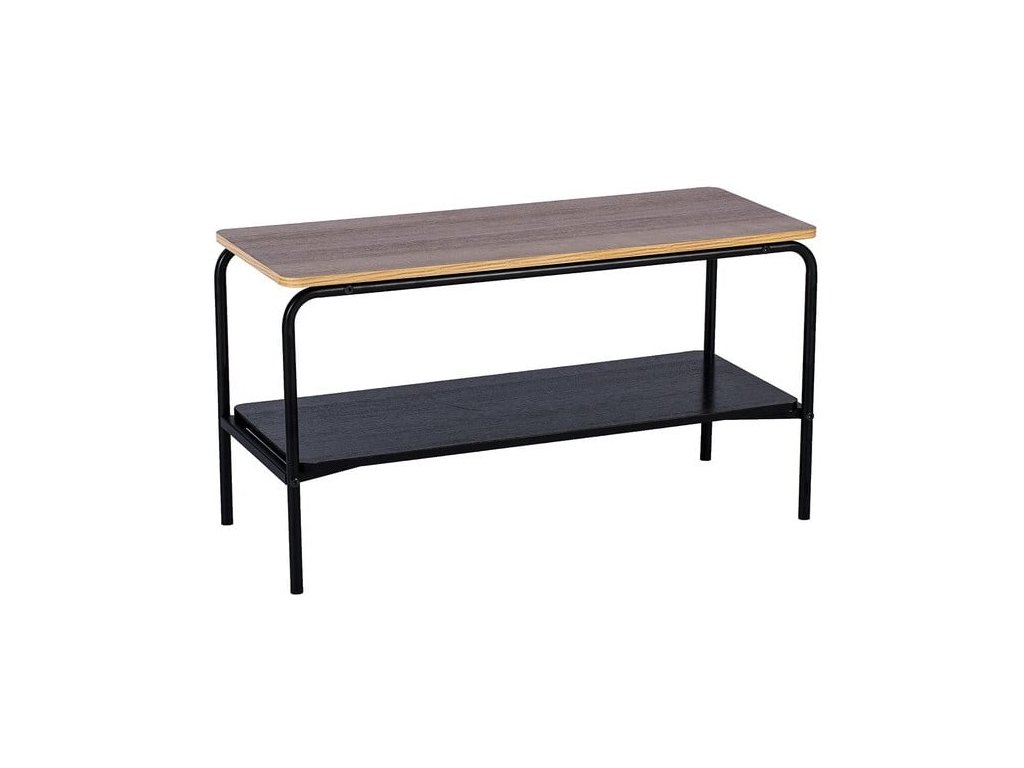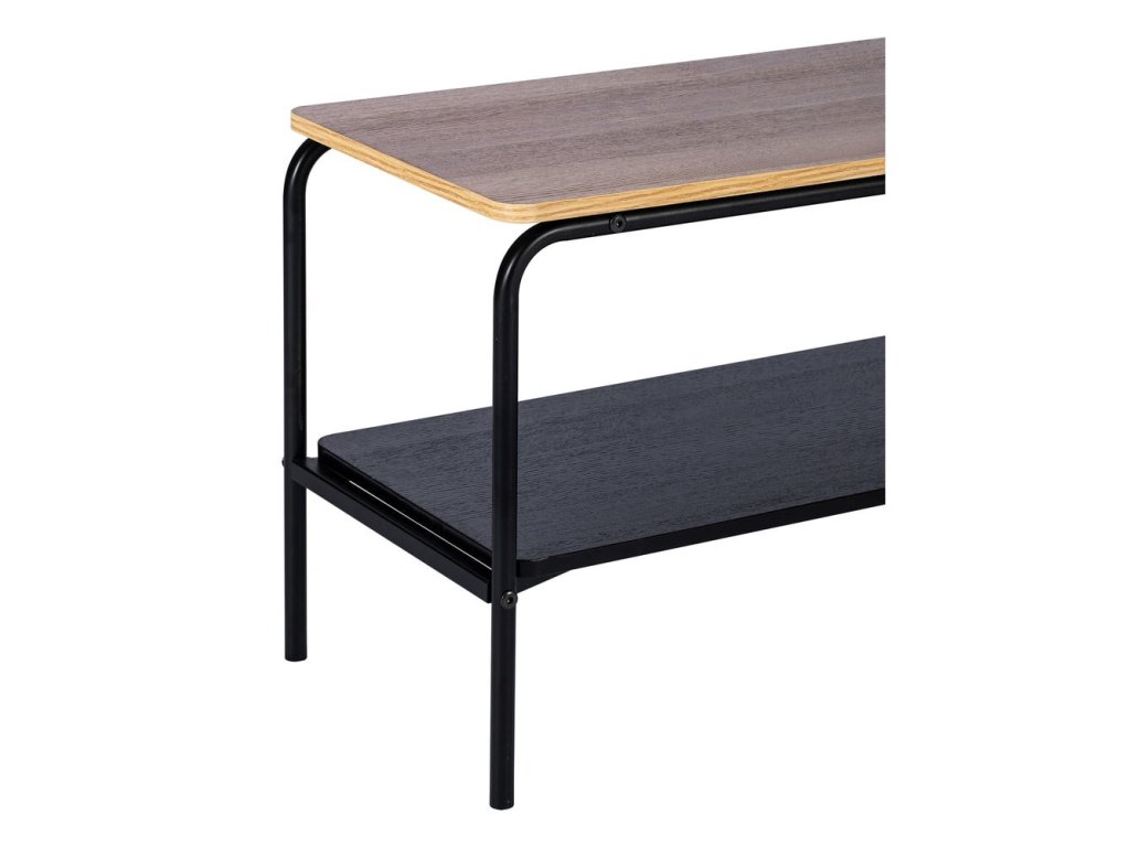 Malý obdélníkový konferenční stolek v kombinaci černé a hnědé barvy přináší spojení 2 odlišných materiálů. Deska stolu s ozdobným dýhováním dokonale imituje masiv, ale je cenově dostupnější než masivní dřevo. Kovová konstrukce nohou a spodního patra přináší celé konstrukci pevnost, odolnost a stabilitu. Díky tomu vám vydrží dlouhé roky. Svým vzhledem obohatí stolek Arlo jakýkoliv interiér.