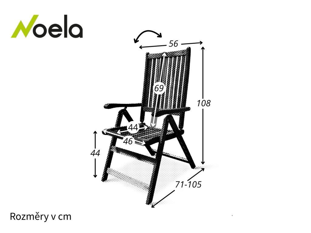 Židle disponuje opěrkou zad o délce 69 cm. Sedák o rozměrech 44 cm x 46 cm (Hloubka x Šířka) ve výšce 44 cm od země.