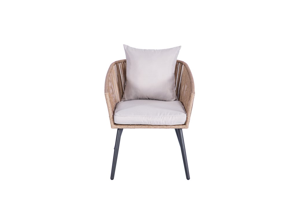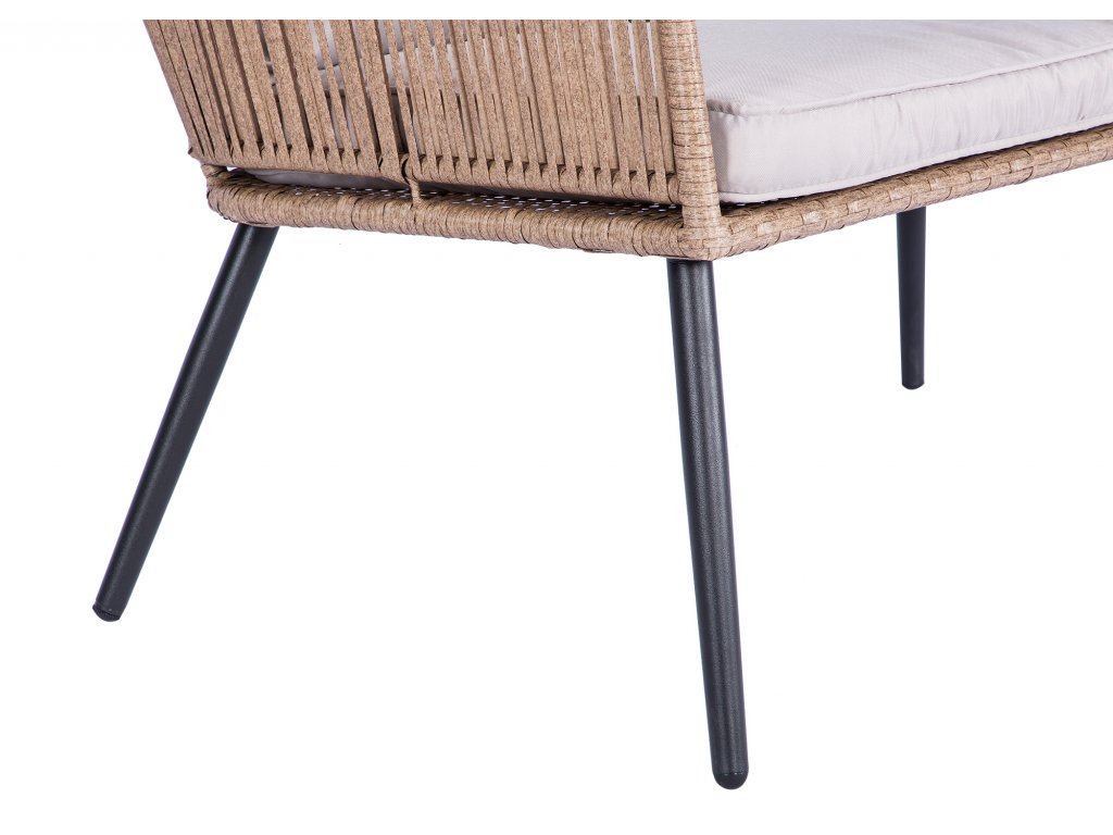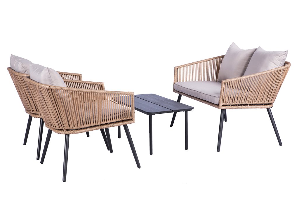 Elegantní set ROCCO s nádechem boho stylu přímo vyzývá k posezení. Konstrukce křesel a sofa z odolné oceli je vypletena umělým ratanem v pískové barvě. Umělý ratan je odolný vůči vnějším vlivům, díky čemuž si sestava zachová svůj původní vzhled a kvality po dlouhá léta. Praktici určitě ocení i nulovou starost o údržbu umělého ratanu – postačí obyčejný vlhký hadřík. Součástí setu jsou podsedáky a polštáře opatřené snímatelnými potahy na zip. V případě potřeby je můžete jednoduše vyprat. Umělé dřevo použité na desku stolku nenasákne vodu a nemusíte se bát, že by jej napadli dřevokazní parazité. Kresba desky věrně imituje strukturu dřeva a koresponduje s přírodním stylem, ve kterém je sestava vyrobena. Set je vhodný jak na Vaši zahradu, tak do interiéru.