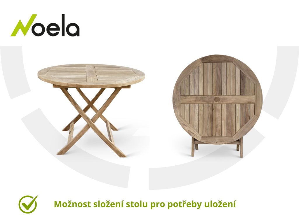 Skládací kulatý stůl Rafa můžete vhodně kombinovat s teakovými křesly STUCKING.
