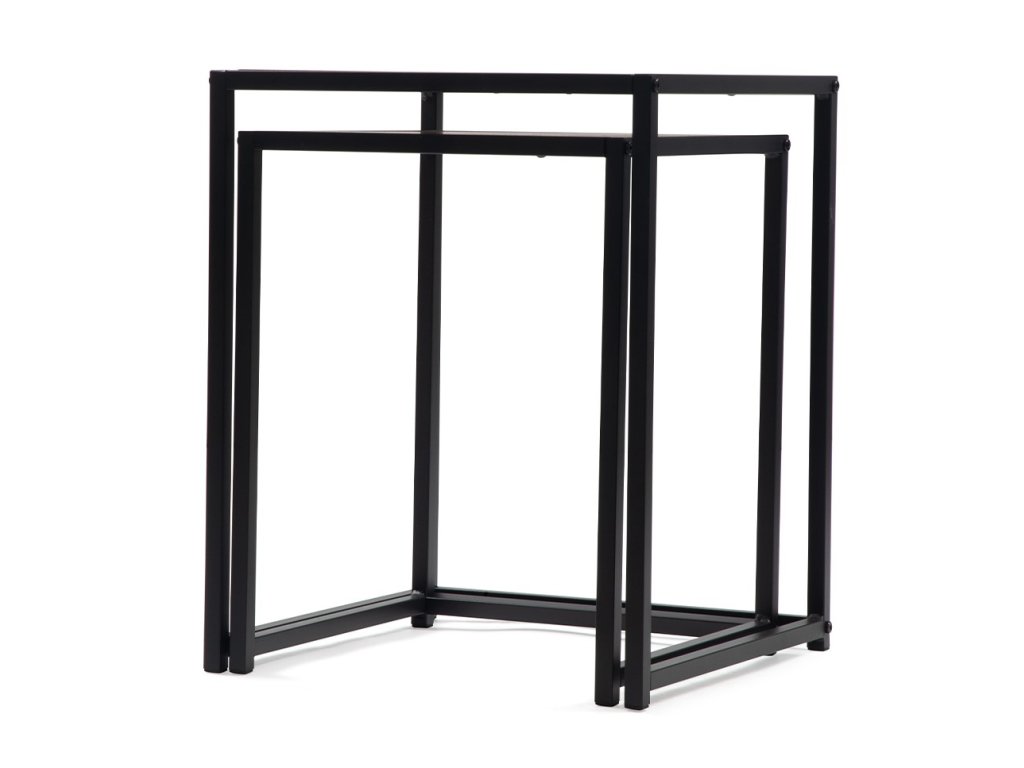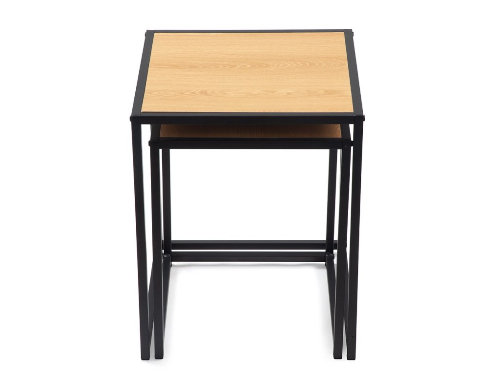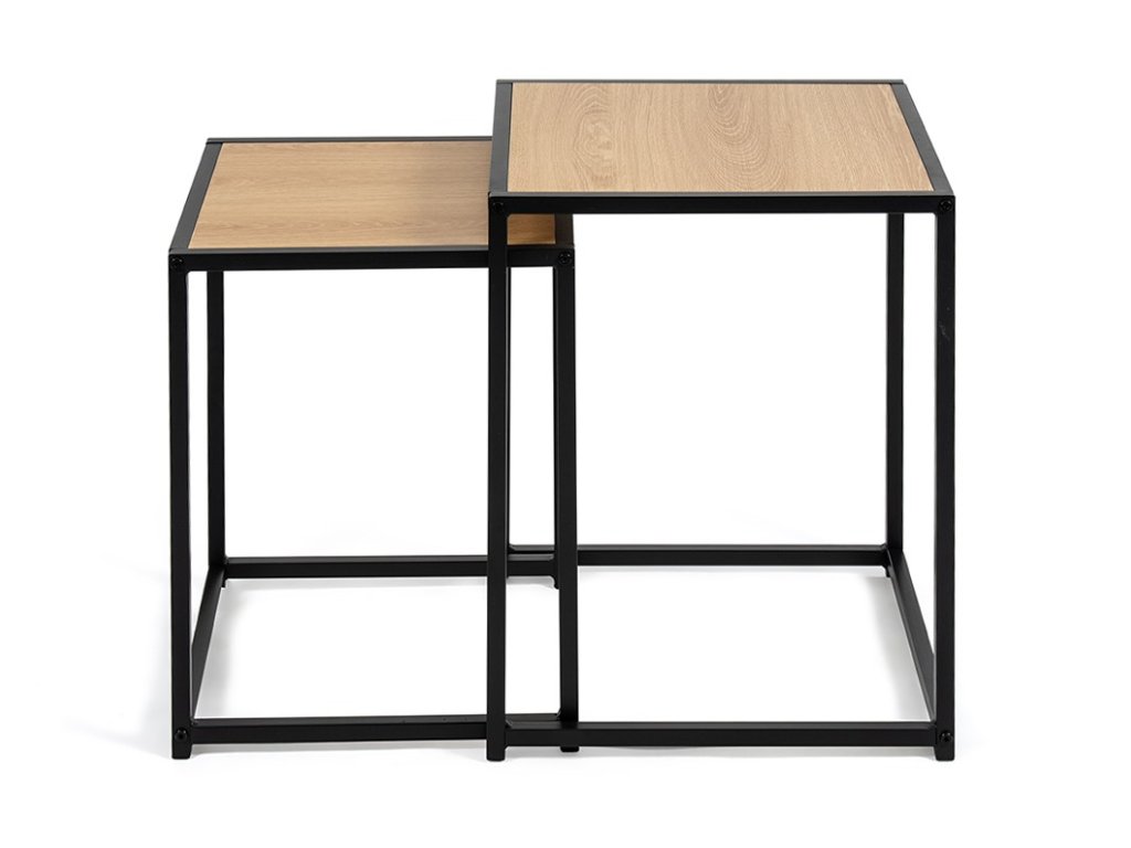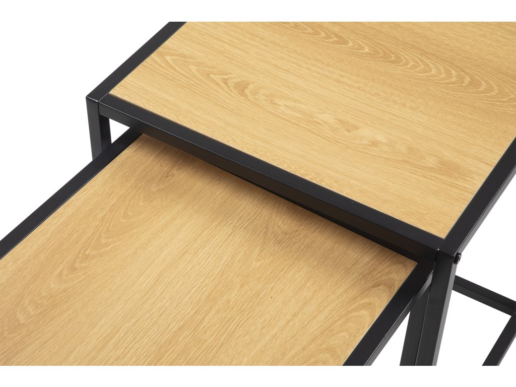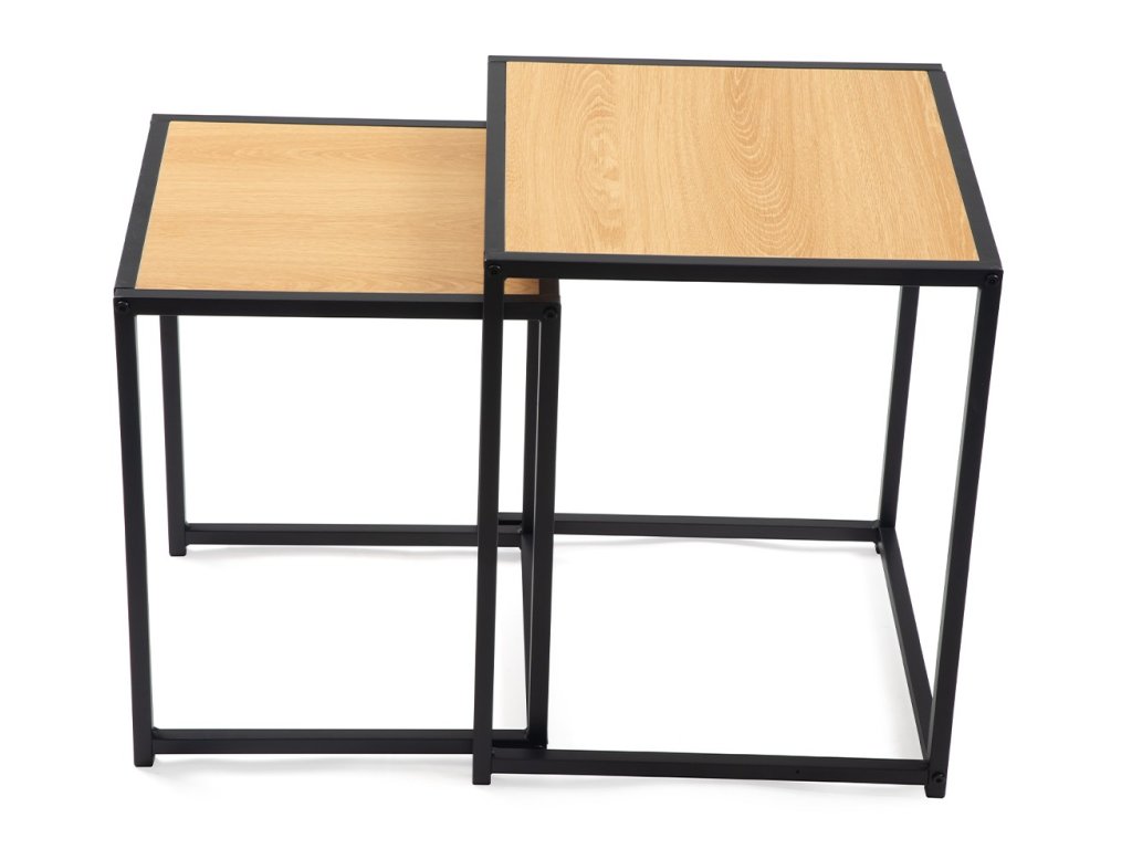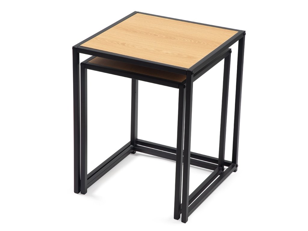 Sada odkladacích stolků, MDF deska v přírodní barvě, černé ocelové podnoží, 50x40x40, 45x35x35 cm.