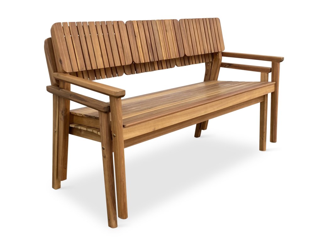 Vaše pohodlí zajistí komfortní sedák o rozměrech 46 x 139 cm a pevné dřevěné područky. Dřevěný sedák poskytne dostatek místa k sezení pro 3 osoby. Pokud plánujete koupit více než jeden kus, určitě oceníte, že lavice je možné stohovat. To se bude hodit zejména při uskladnění po sezóně, kdy lavice jednoduše naskládáte na sebe. Nosnost lavice činí až 240 kg.