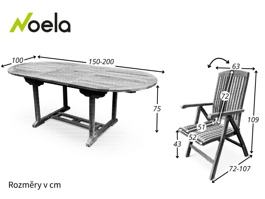 Zahradní stůl doplňuje 6 polohovacích dřevěných židlí z vysoce odolného materiálu teak. Židle je anatomicky tvarovaná. Široké područky pro pohodlné sezení a rychlá možnost složení pro potřebu uložení. Vysokou zádovou opěrku zahradní židle America si můžete podle potřeby nastavit až do 7 poloh. Nosnost činí až 130 kg.