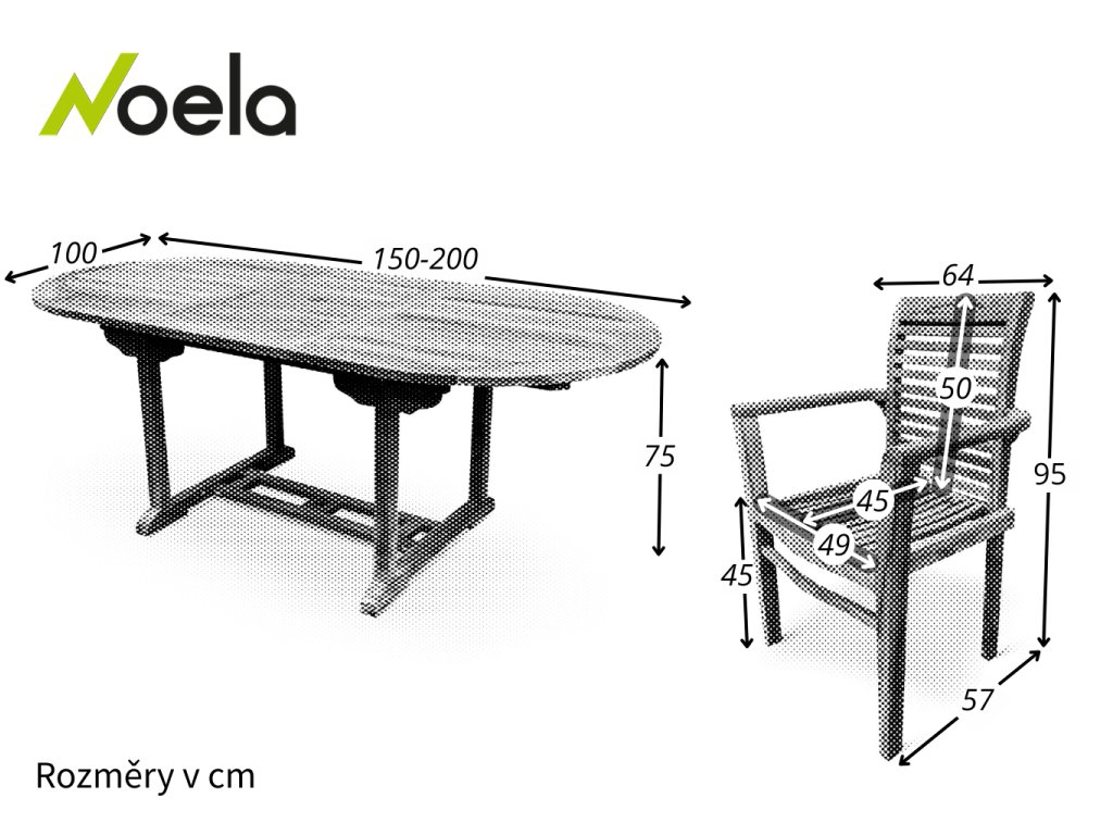 Rozměry stolu: 100 cm x 150/200 cm x 75 cm (Hloubka x Šířka x Výška)