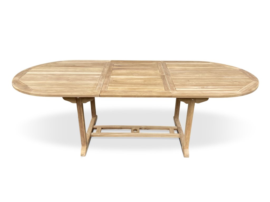 Velký oválný stůl je možné rozložit na 2 různé rozměry a tak Vás nezaskočí ani větší návštěva. Rychle a pohodlně prodloužíte stůl ze základní délky 180 cm na 240 cm. Dřevěná deska stolu o síle 2,7 cm má uprostřed praktický otvor pro slunečník o průměru 5 cm. Dodáváno včetně dřevěné záslepky.