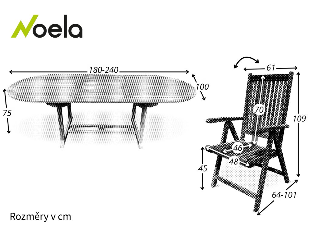 Zahradní stůl doplňuje 6 opravdu pohodlných a stabilních teakových židlí v provedení přírodní teak. Židle má 7 poloh nastavení sklonu opěradla a je velice rychle složená. Po sezóně ji tak snadno uložíte. Široké područky pro pohodlné sezení. Nosnost činí až 130 kg.