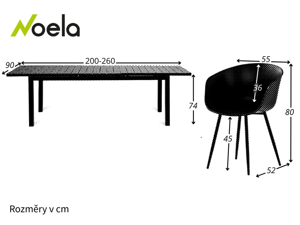 Rozměry stolu: 90 cm x 200/260 cm x 74 cm (Hloubka x Šířka x Výška)