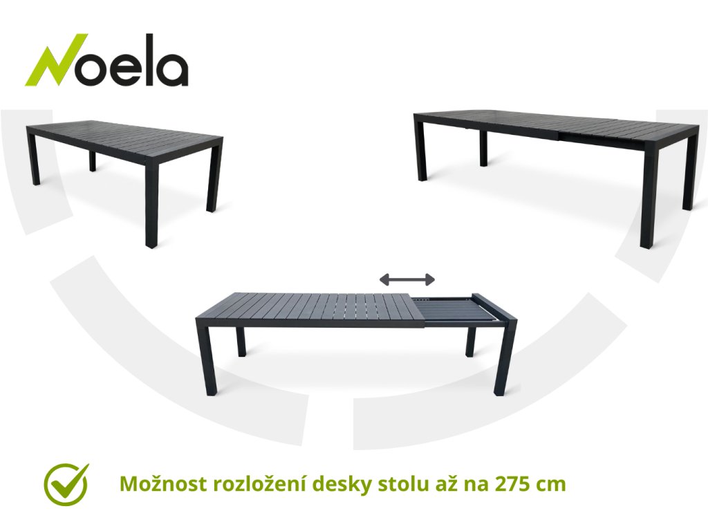 Masivní stůl Grande Pasto XXL je ideálním jídelním stolem vhodným jak do zahrady, tak na terasu. Moderní, atraktivní design, který ještě dlouho nevyjde z módy a jen tak Vás neomrzí. Konstrukce stolu vyrobená z hliníku a adaptéry u nohou zaručují dostatečnou stabilitu a nosnost. Deska stolu v černé barvě je vyrobena z umělého dřeva artwood. Stůl disponuje jednoduchým a praktickým systémem rozkládání. Umělé dřevo oproti tomu přírodnímu skýtá celou řadu výhod. Artwood odolává povětrnostním vlivům a oproti dřevu přírodnímu vyžaduje pouze minimální údržbu. Nevyšisuje barvu, nepropustí vodu a nenapadnou jej dřevokazní parazité.