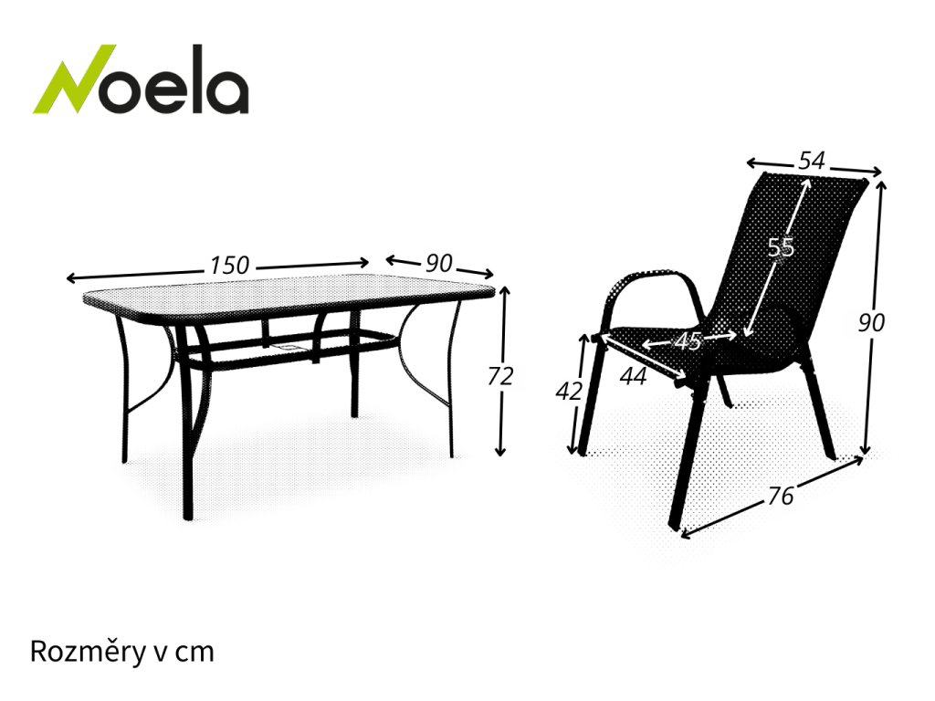 Jídelní stůl doplňuje komfortní zahradní židle s ocelovou konstrukcí. Židle je stohovatelná a téměř bezúdržbová. Sedák a zádovou opěrku tvoří vzdušná textilie a díky inteligentnímu tvarování je velice pohodlná. Židli doplňují kovové područky. Nosnost činí až 130 kg. Vhodná pro nekomerční použití. Pro delší životnost doporučujeme neskladovat ve vlhkých prostorách a nenechávat na dešti.