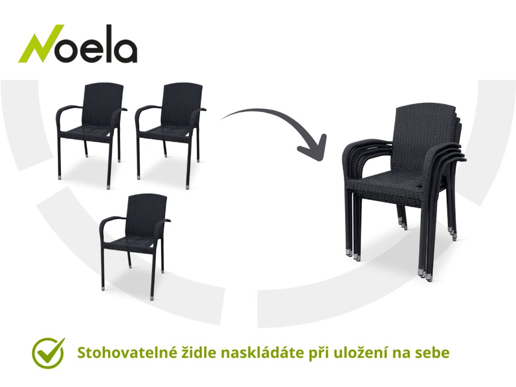 Jídelní stůl doplňuje pohodlná zahradní židle s ocelovou konstrukcí. Židle je stohovatelná, téměř bezúdržbová a má vyztužený sedák, který unese těžší váhy i po delší dobu. Nosnost činí až 130 kg! Židle je vyrobená z odolného umělého ratanu, který má jen minimální nároky na údržbu a dobře odolává povětrnostním vlivům. Je skvělou volbou do českých povětrnostních podmínek.