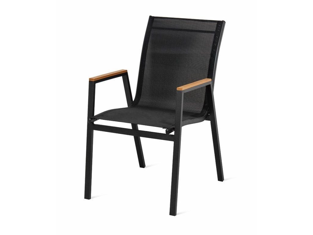 Jídelní stůl doplňují kvalitní zahradní židle vyrobené z téměř bezúdržbových materiálů. Zahradní židle OSLO disponuje pevnou hliníkovou konstrukcí a pohodlným sedákem z textilenu v černé barvě. Vzdušnou textilii sedáku a opěrky zad oceníte zejména v letních horkých měsících. Celou konstrukci doplňují elegantní područky z artwoodu v hnědé barvě. Praktické zahradní židle OSLO je možné stohovat. Naskládáte je jednoduše na sebe a ušetříte tak místo při jejich uskladnění. Nízká hmotnost hliníkové konstrukce usnadňuje manipulaci a přenášení. Díky ergonomickému tvarování v ní vydržíte sedět klidně celý večer.
