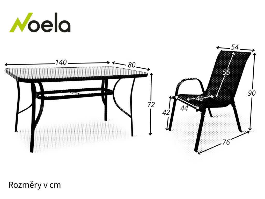 Sestava zahrnuje stabilní stůl s kovovou konstrukcí z oceli a skleněnou deskou o rozměrech 140 x 80 cm. Deska stolu vyrobená z průhledného tvrzeného skla disponuje otvorem pro slunečník o průměru 4,5 cm. Stůl dodáváme včetně plastové záslepky pro případ, kdy otvor pro slunečník nebudete využívat. Kovové části stolu byly ošetřeny proti rzi. Praktický stůl z téměř bezúdržbových omyvatelných materiálů, který svým jednoduchým univerzálním designem zapadne do všech venkovních prostor.