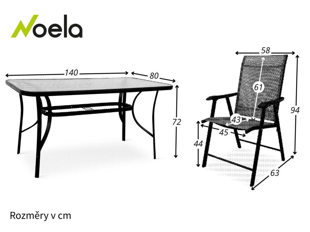 Sestava zahrnuje stabilní stůl s kovovou konstrukcí z oceli a skleněnou deskou o rozměrech 140 x 80 cm. Deska stolu vyrobená z průhledného tvrzeného skla disponuje otvorem pro slunečník o průměru 4,5 cm. Stůl dodáváme včetně plastové záslepky pro případ, kdy otvor pro slunečník nebudete využívat. Kovové části stolu byly ošetřeny proti rzi. Praktický stůl z téměř bezúdržbových omyvatelných materiálů, který svým jednoduchým univerzálním designem zapadne do všech venkovních prostor.