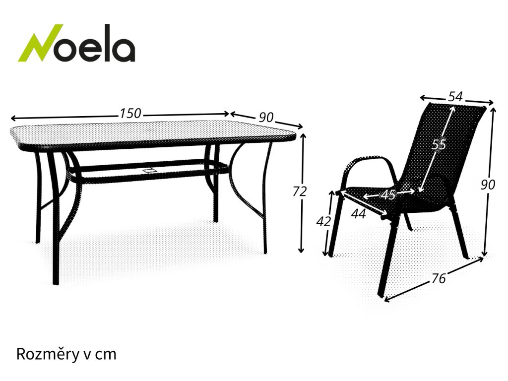 Sestava zahrnuje stabilní stůl s kovovou konstrukcí z oceli a skleněnou deskou o rozměrech 150 x 90 cm. Deska stolu vyrobená z průhledného tvrzeného skla disponuje otvorem pro slunečník o průměru 4,5 cm. Stůl dodáváme včetně plastové záslepky pro případ, kdy otvor pro slunečník nebudete využívat. Kovové části stolu byly ošetřeny proti rzi. Praktický stůl z téměř bezúdržbových omyvatelných materiálů, který svým jednoduchým univerzálním designem zapadne do všech venkovních prostor.