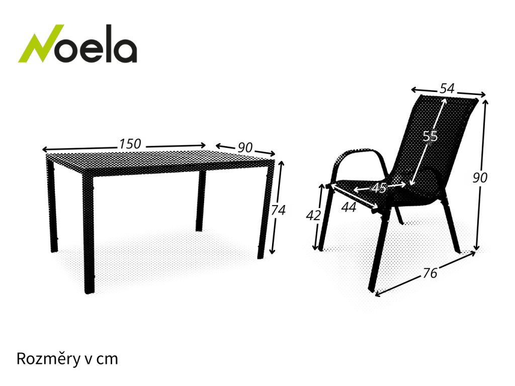 Rozměry stolu: 90 cm x 150 cm x 74 cm (Hloubka x Šířka x Výška)