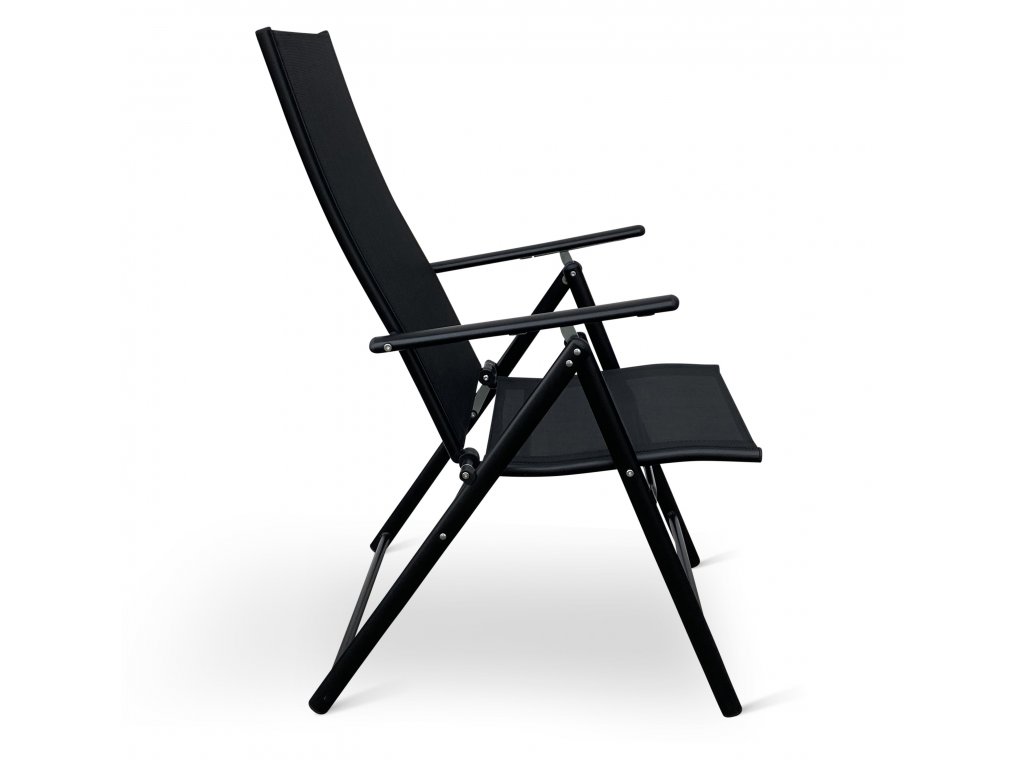 Jídelní stůl doplňuje moderní skládací a polohovací zahradní židle s ocelovou konstrukcí, která je ošetřena práškovým lakem proti rzi. Sedák a opěrka zad jsou vyrobeny ze vzdušné textilie. Při lenošení oceníte vysoké opěradlo na záda a pohodlné područky. Židli Pia můžete polohovat. Rychle tak najdete správnou a pohodlnou pozici. Židli lze v případě potřeby složit. Po sezóně ji tak snadno uložíte.