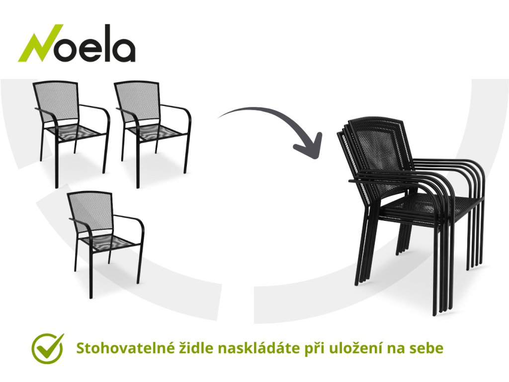 K jídelnímu stolu dodáváme pohodlnou celokovovou zahradní židli Lana steel s označením ZWMC-19. Konstrukci židle z ocelových trubek doplňuje kovový výplet sedáku a opěrky. Kovové části nábytku byly při výrobě ošetřeny práškovým lakem proti rzi. Židle Lana steel je možné stohovat. Ušetříte tak místo při jejich uskladnění, kdy židle jednoduše naskládáte na sebe. Nosnost židle činí až 100 kg.