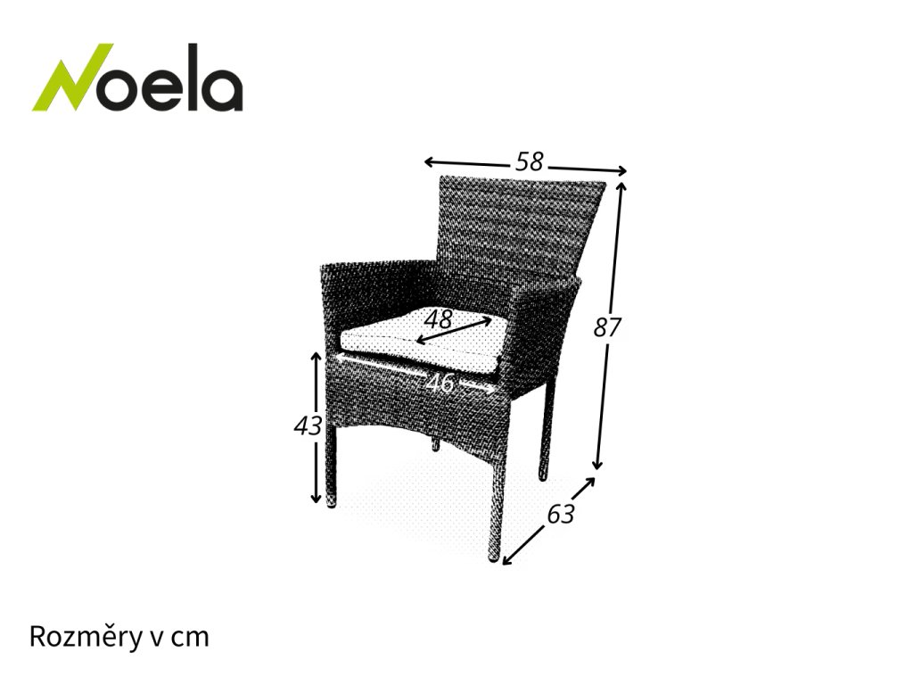 Křeslo disponuje opěrkou zad o délce 48 cm. Sedák o rozměrech 48 cm x 46 cm (Hloubka x Šířka) ve výšce 43 cm od země.