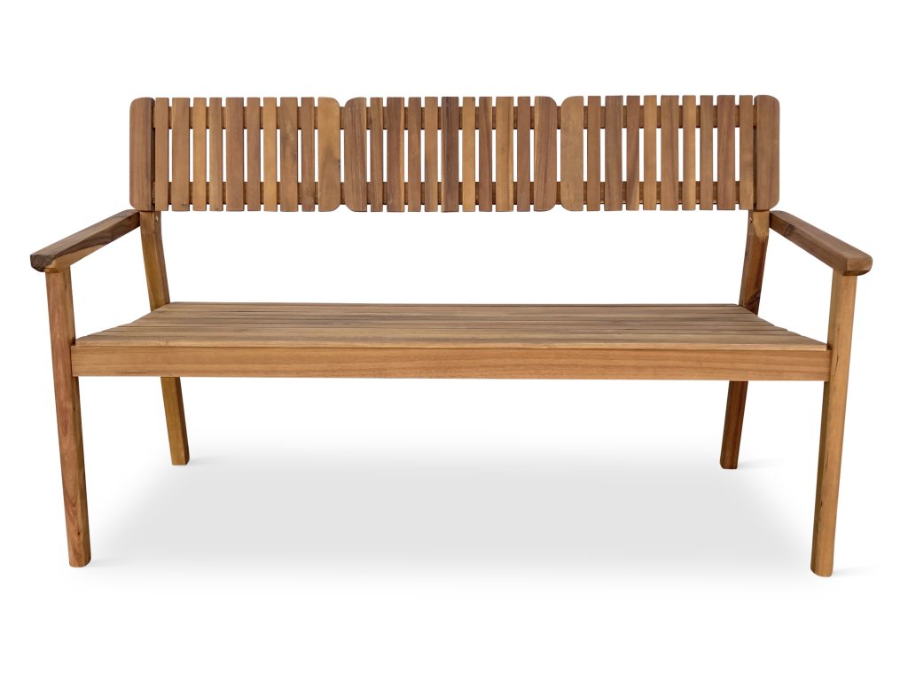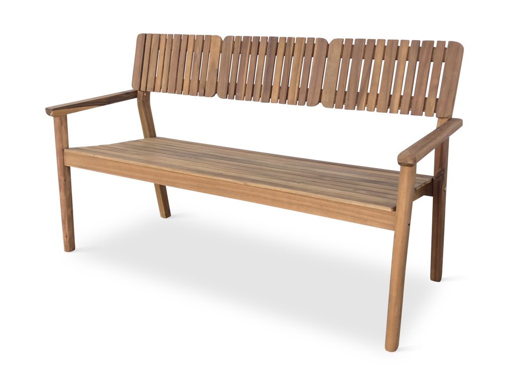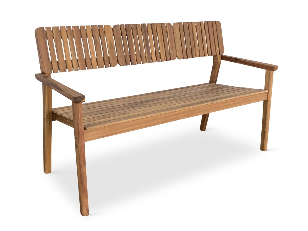 Poslední částí sestavy je dřevěná lavička LUCY z akácie. Vaše pohodlí zajistí komfortní sedák o rozměrech 46 x 139 cm a pevné dřevěné područky. Dřevěný sedák poskytne dostatek místa k sezení pro 3 osoby. Pokud plánujete koupit více než jeden kus, určitě oceníte, že lavice je možné stohovat. Nosnost lavice je 240 kg.