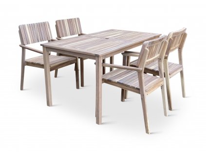 Zahradní sestava nábytku z teakového dřeva se skládá ze stabilního obdélníkového stolu Garden I. a 4 pevných křesel Kingsbury. Sestava je nenáročná na údržbu.