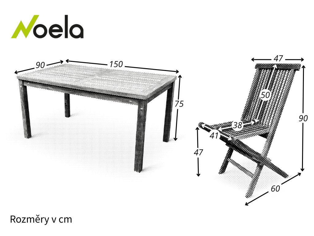 Zahradní stůl doplňuje 6 skládacích teakových židlí v provedení přírodní teak. Jednoduchý design židle bez područek. Díky možnosti složení židle nezabere mnoho místa při uskladnění. Nosnost činí až 110 kg.